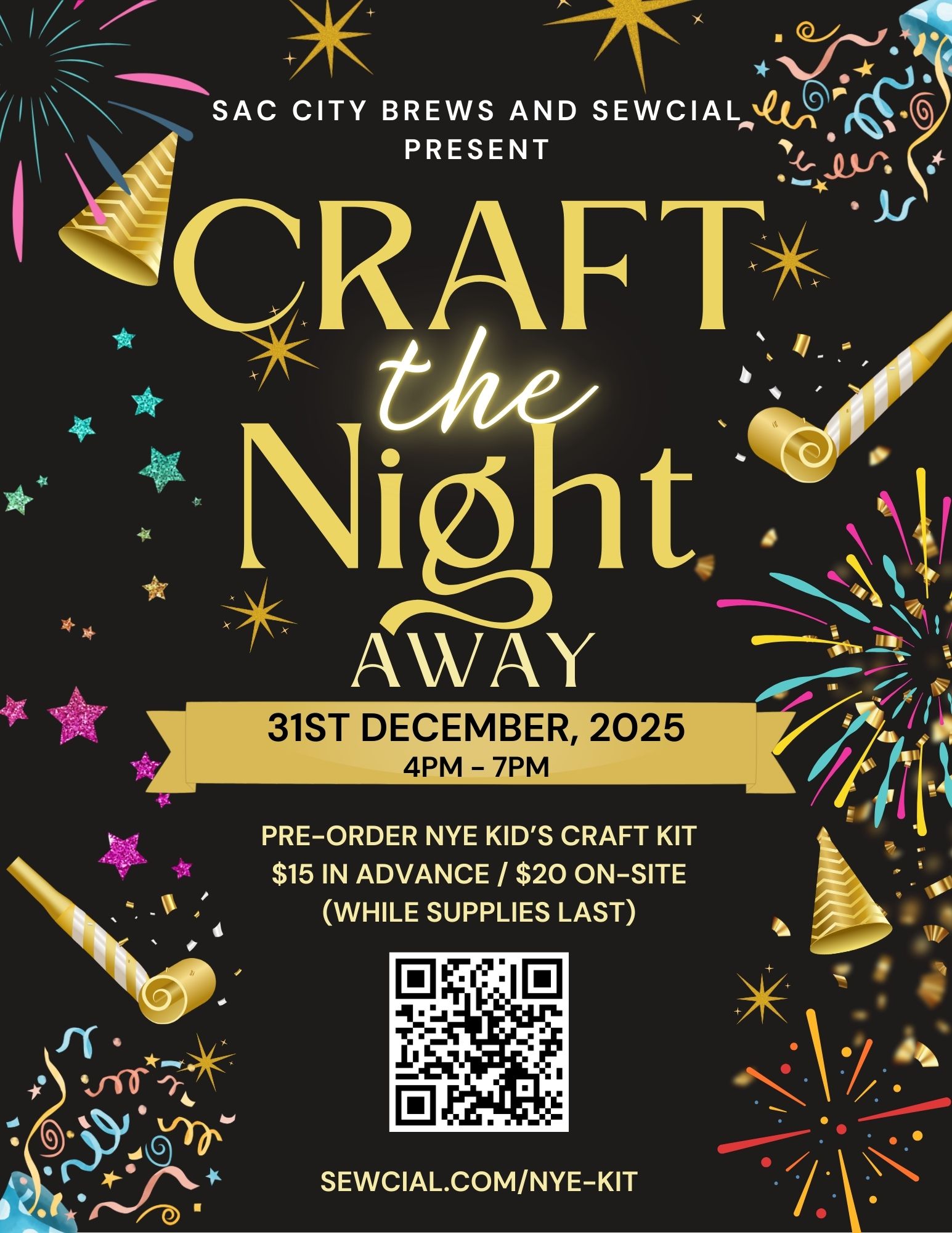 Join Sewcial and Sac City Brews for Craft the Night Away, a super-fun, kid-friendly New Year’s Eve crafting party happening inside Sac City Brews’ event space.