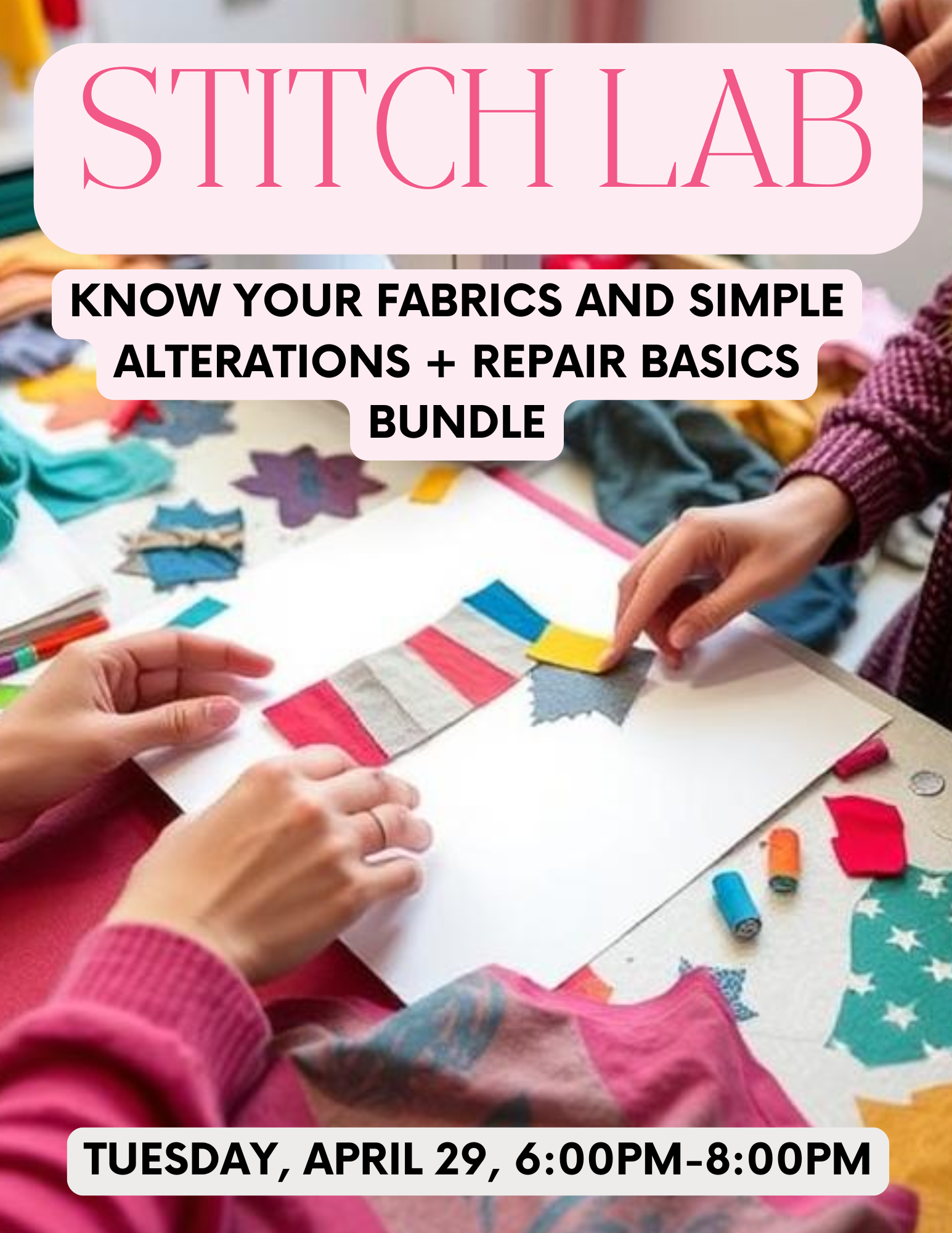 You'll touch, test, and stitch your way through fabric types — learning how they behave, what tools work best, and which techniques will save you serious frustration. You’ll leave with a custom-made Fabric Reference Journal filled with swatches, stitch samples, and notes you’ll actually use.